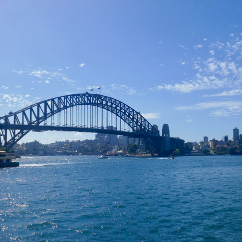 Cities by the water radiate a special kind of energy, and on a sunny day like our first in Sydney, they are happy cities. The ferry took us straight into Sydney harbour, the opera house gleaming on our left and Harbour bridge towering to our right, the quay buzzing with commuting businessmen, street musicians and the forlorn passengers of a monstrous cruise ship. On the summit of the bridge arch, little shadows inched along like a colony of ants crawling to the top of a rock, the famous bridge walk. Nicknamed "the Coathanger", it is the tallest steel arch bridge in the world but what struck me was its precarious construction. The deep waters of Sydney Harbour made temporary supports impractical, so the arch was assembled by building out from each bank and met in 1930 after seven years of labour.